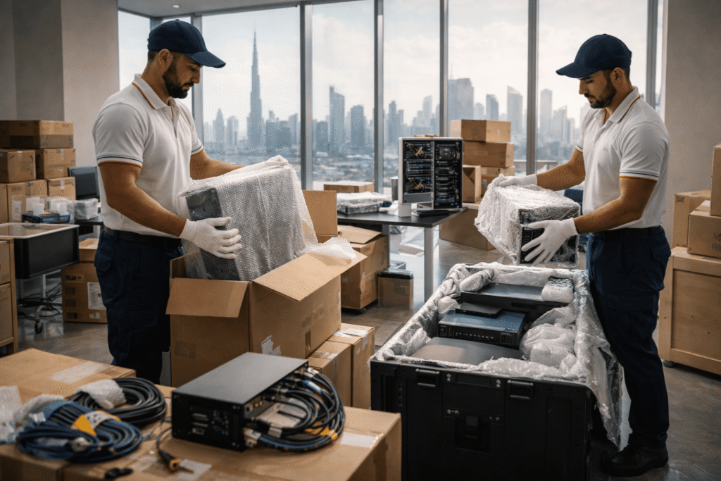 We transport servers, computers, UPS units, and sensitive devices using protective packing and careful handling to reduce damage risk across Dubai, Sharjah, and Ajman.